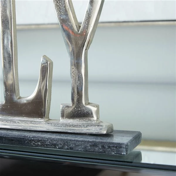 - Features a polished silver metal finish with a smooth black base made of solid marble material