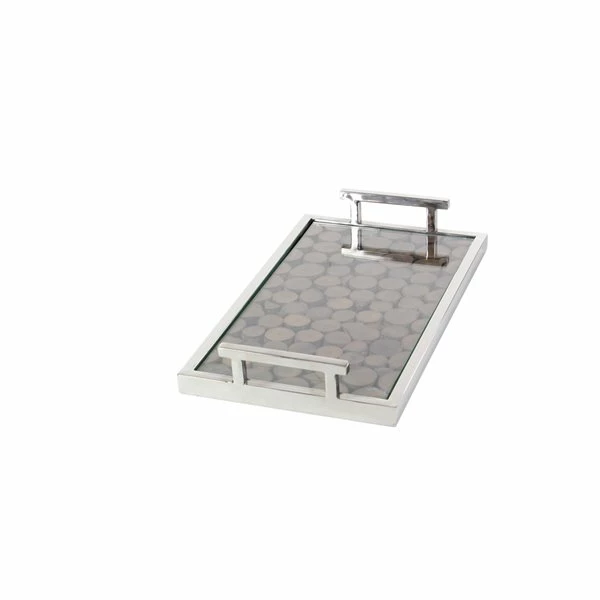- A serving or display rectangle tray set made from stainless steel and mango wood