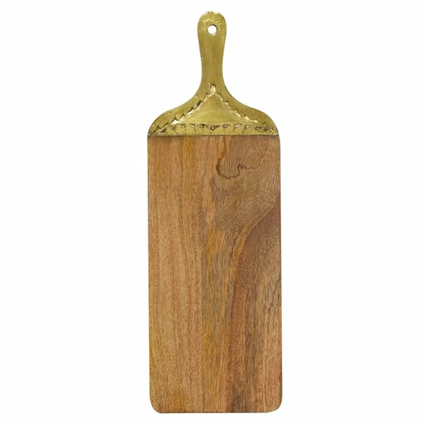 - Long mango wood surface with brass handle
