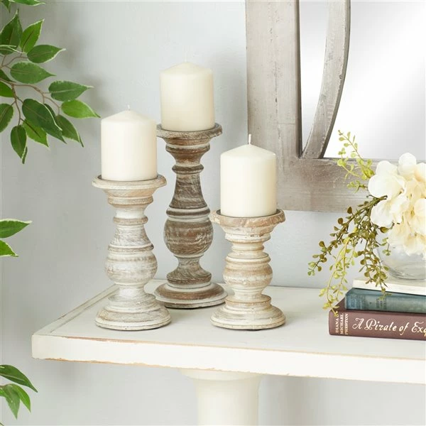Wholesale ⌛ Grayson Lane 3-Candle Wood Pillar Holder (6-in, 8-in, 10-in) 🎁