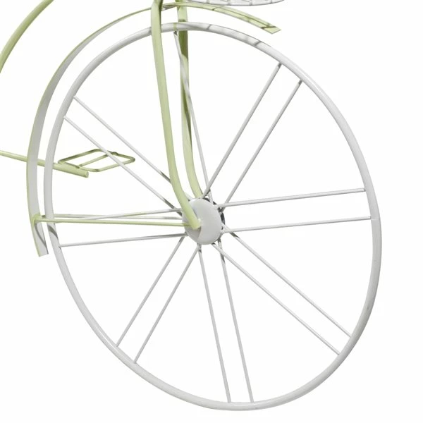 - Glossy paint colours of white and pastel green coat the all-metal frame