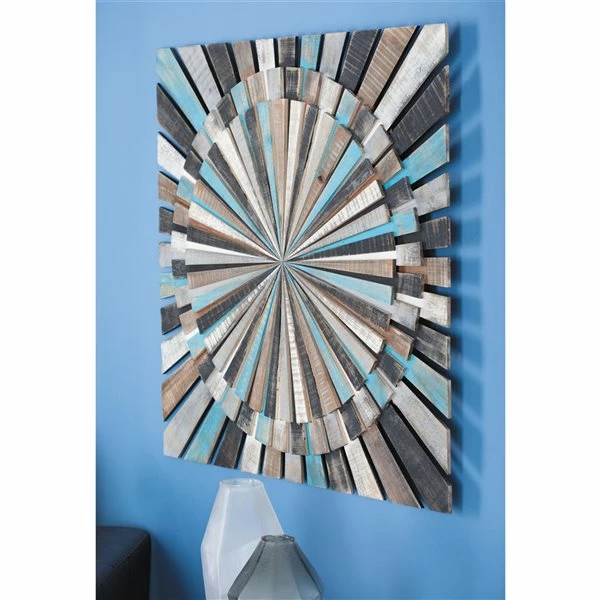 - It showcases a sunburst-style, 3-layer colour wheel image sculpture