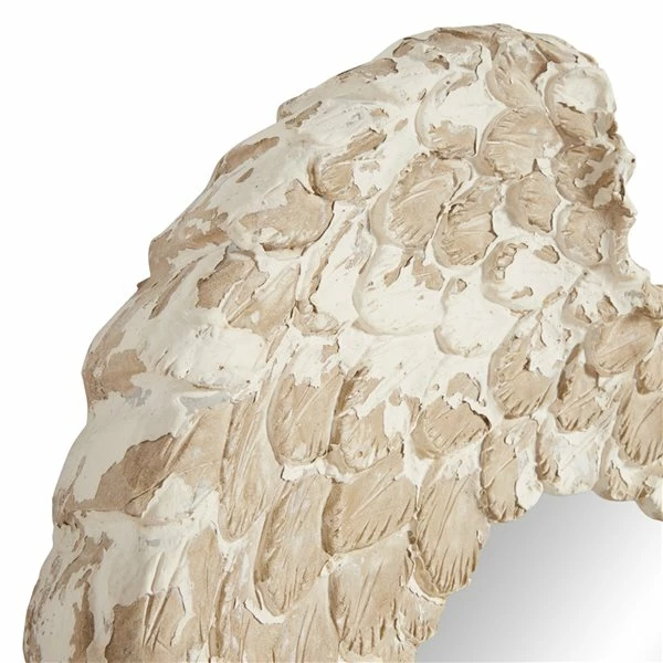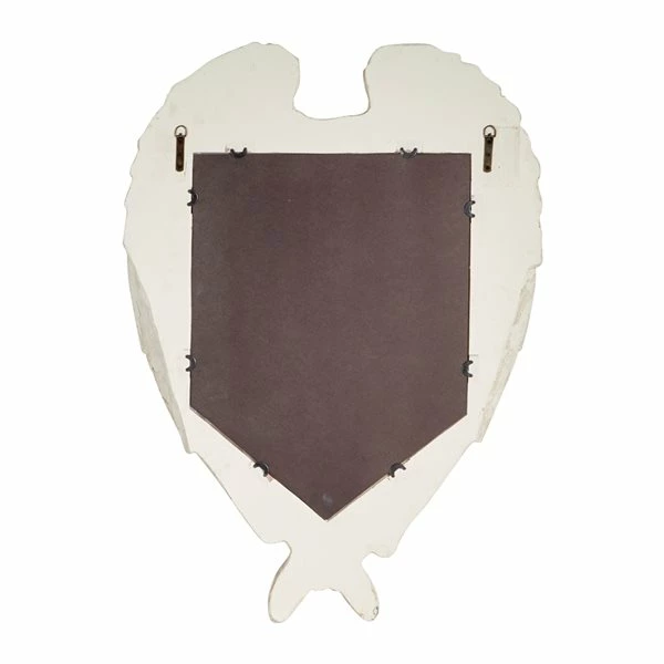 - The heart-shaped silhouette and distressed finish on this vanity wall mirror pays tribute to angels’ wings