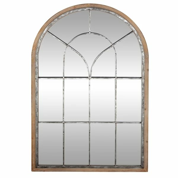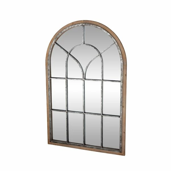 - This mirror window pane wall decor features a farmhouse style inspired design in an arching window profile complete with distressed paint finishing on the metal materials