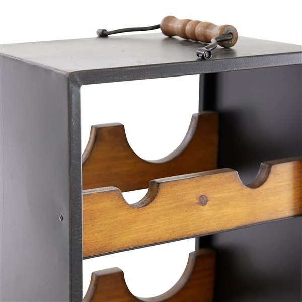 - This grey and brown industrial rack highlights 8 bottle compartments and comes with a tubular handle