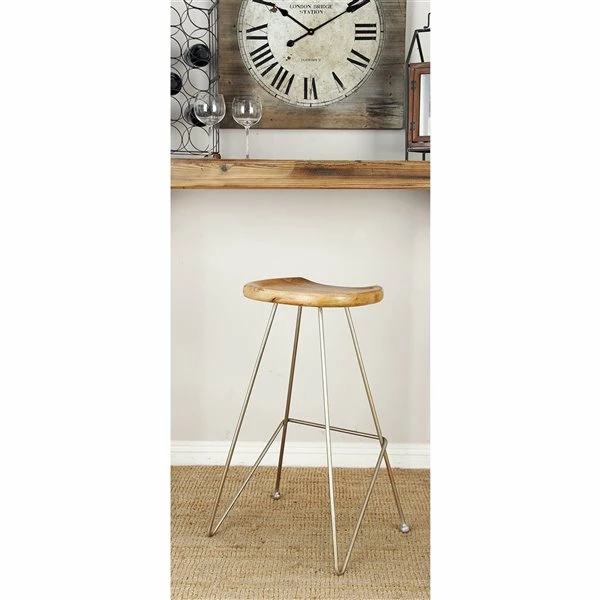 - This bar stool chair carries a reliable combination of wood and iron