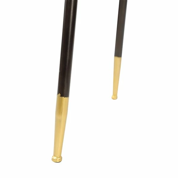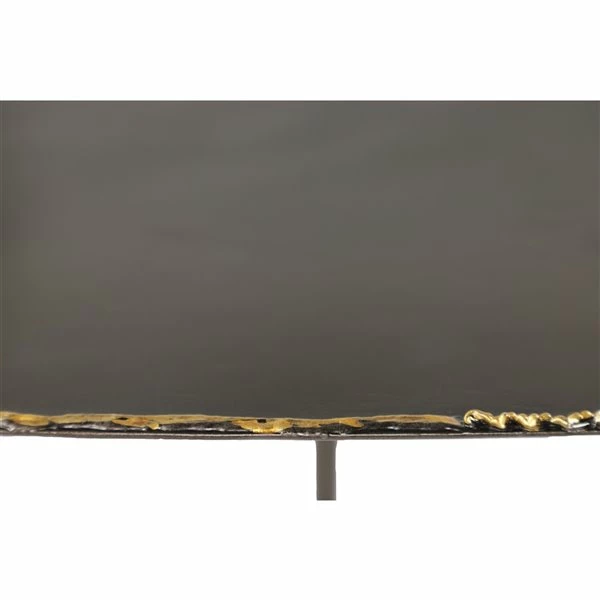 - Industrial table with two-toned matte black and metallic gold finish, and hammered edge detail