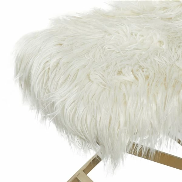 Wholesale 😉 Grayson Lane Modern White Faux Fur Rectangle Ottoman with X-Shaped Gold Metal Frame 🤩