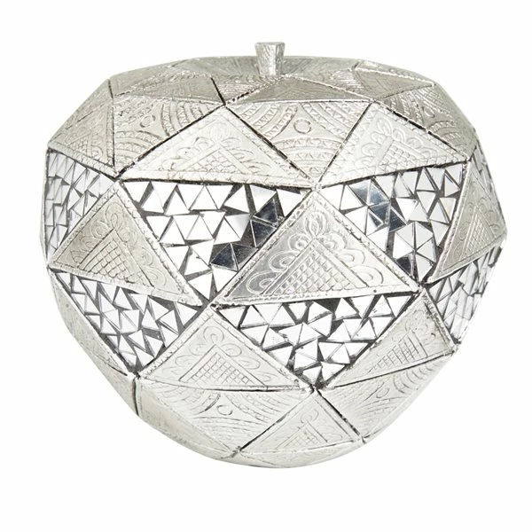 - Matte silver finish and reflective glass accents